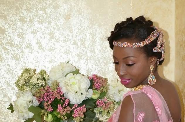 We are so in love with Joselyne's look for her kitchen party. She has Rwandese roots so she went traditional. We love it when brides embrace African traditions. Looking absolutely gorgeous in her pink and orange "Mushanana". Mushanana ni vazi la ki Rwandese linalovaliwa na wanawake. It includes a floor length skirt and a sash draped over one shoulder with a tank top underneath. To complete the look we tied and designed Masai beads for her head piece. African brides rock!!!